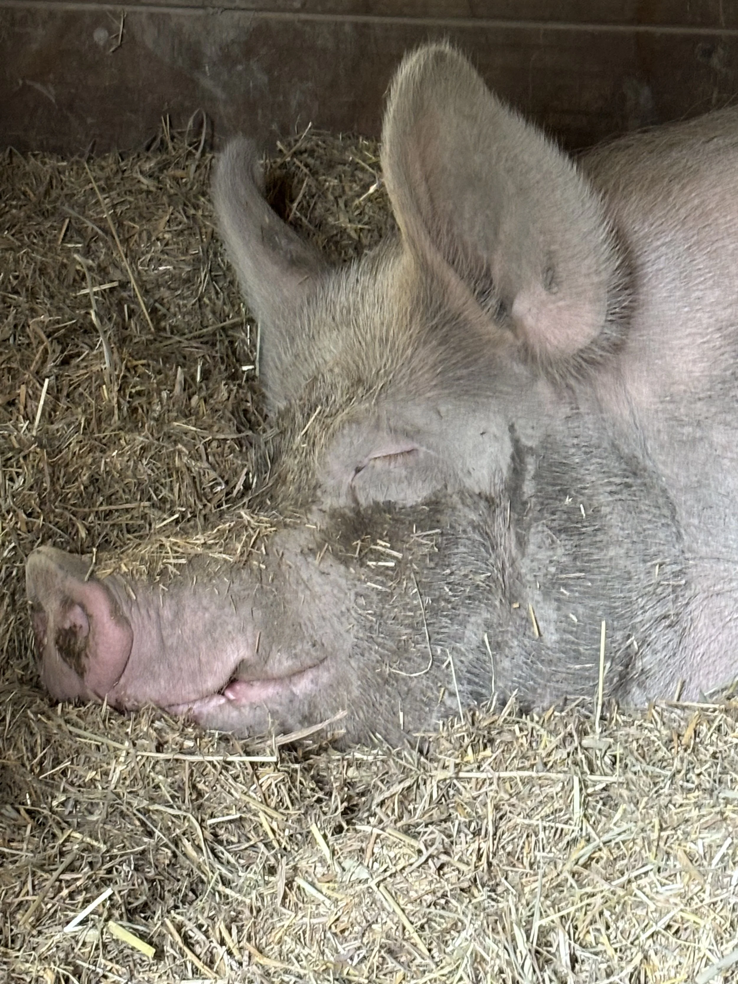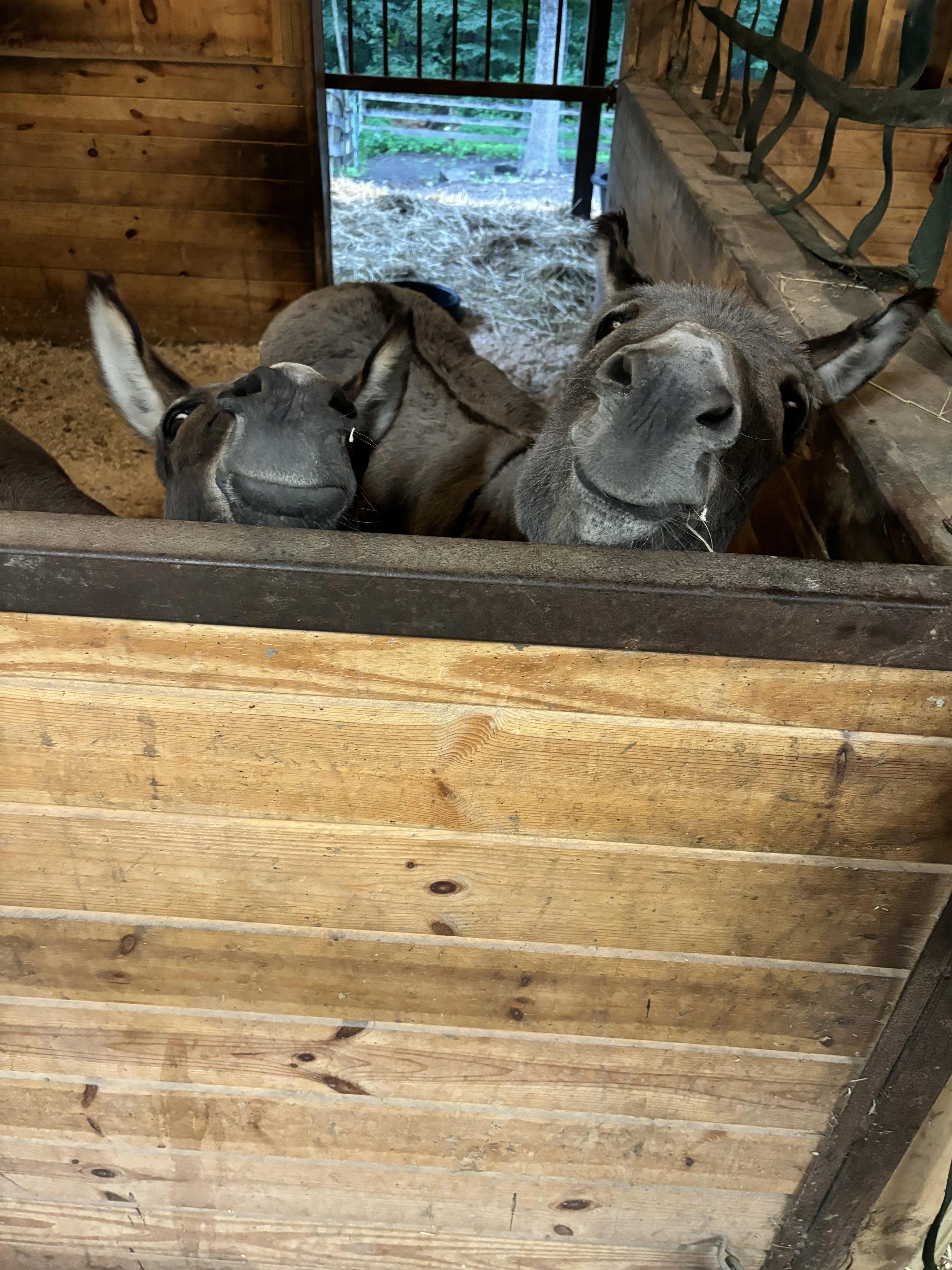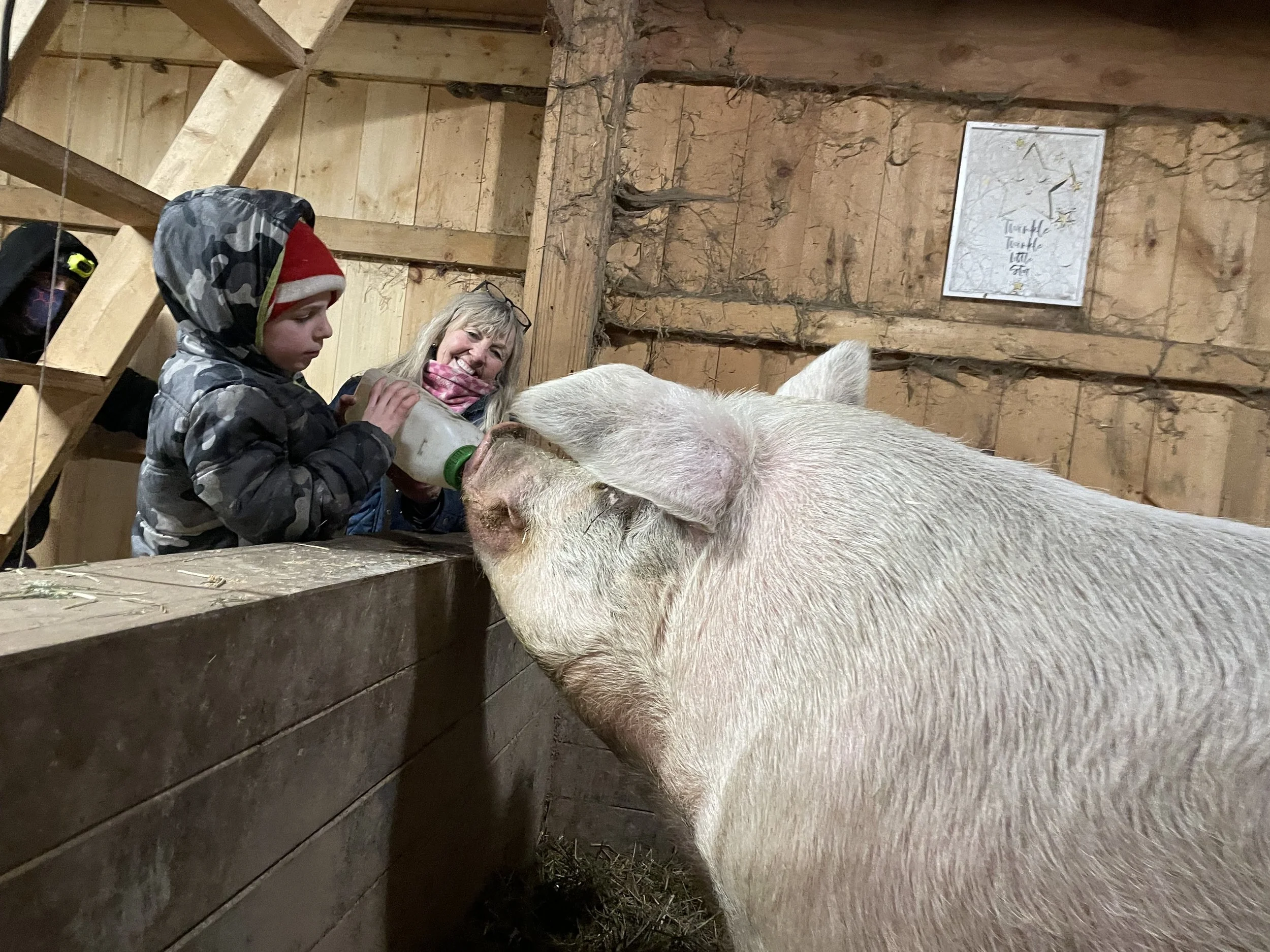 These days he hangs out with Rocky, Luna, Roo, Elle Belle, Wensleydale, Fenway Pork, Wesley, Delilah, Donk, Honey Bear, Tiger and Billy the Rescue Barn Cat.